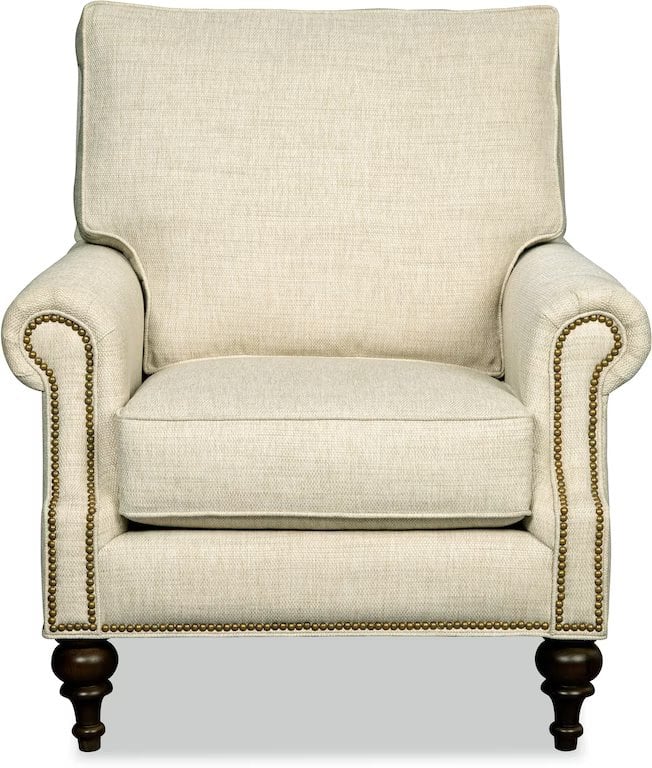 moreRelax and look good while you do it with this accent chair. Featuring optional nailhead trim, turned legs, and rolled arms, this chair has a transitional aesthetic. This item is customizable with a variety of upholstery covers, wood finishes, and nailhead trims to help you find the perfect match for your space.