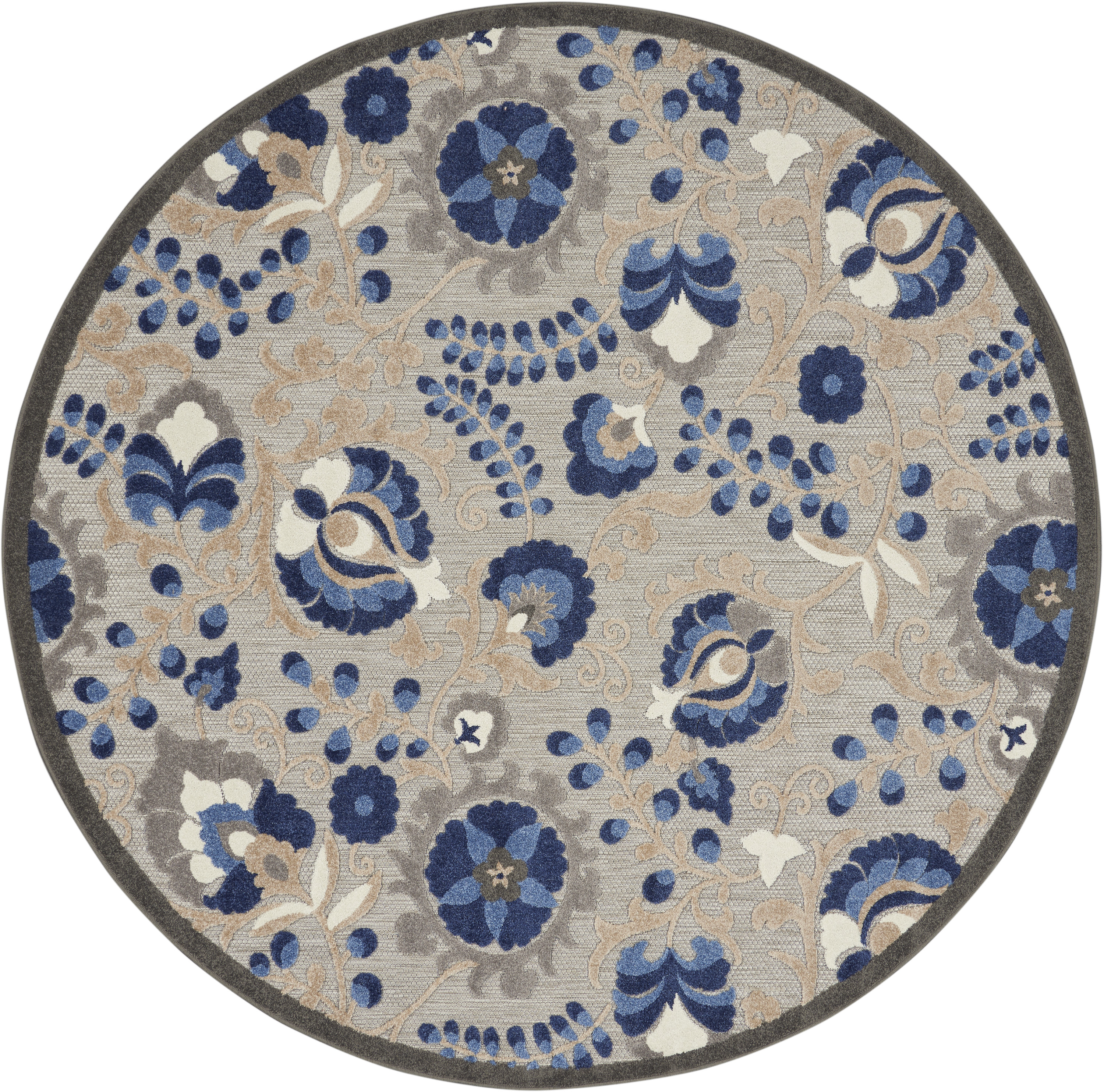 The Aloha 5'3" Natural/Blue Round Rug, made by Nourison,