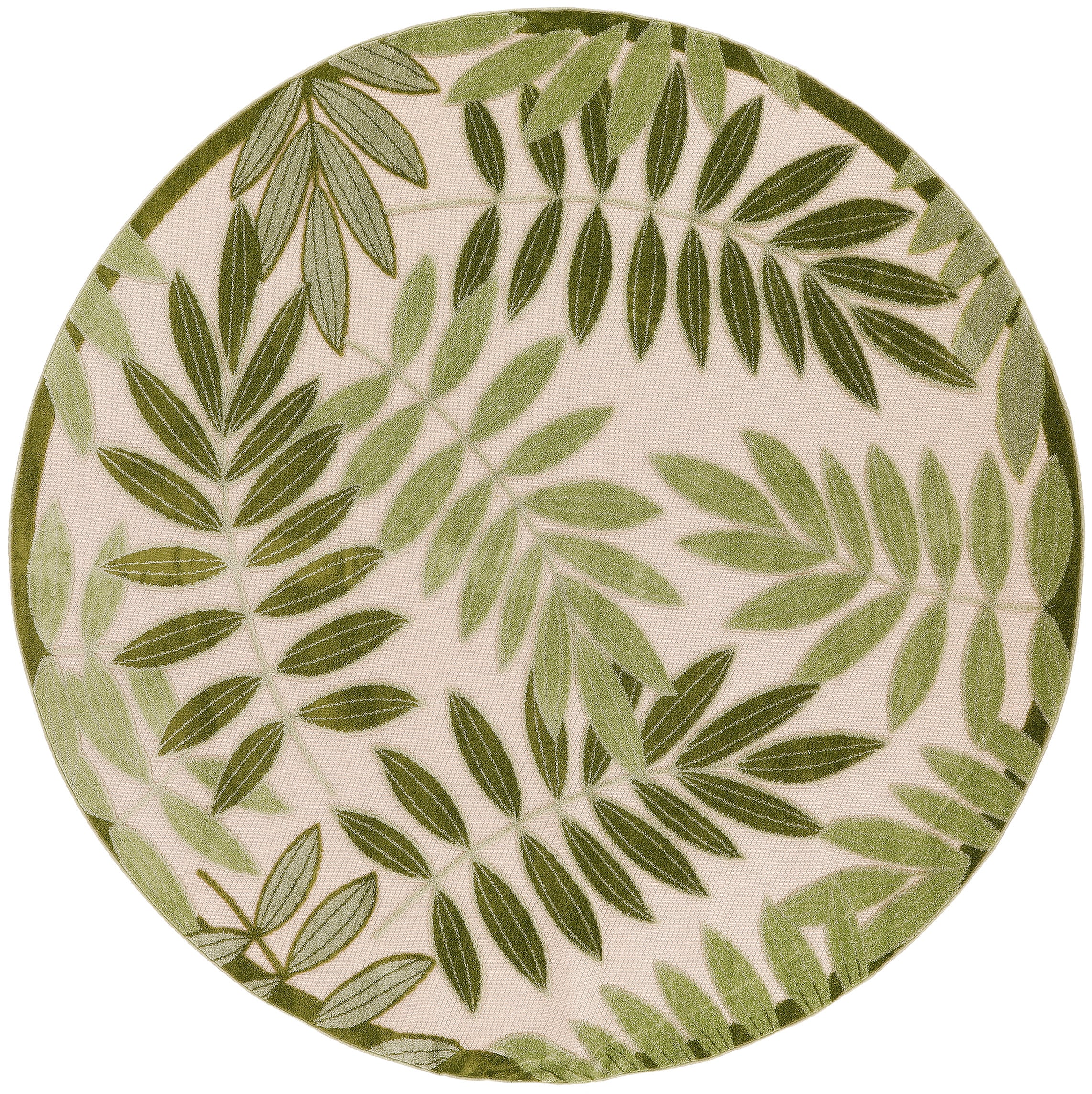 The Aloha 5'3" Round Ivory Green Round Rug, made by Nourison,