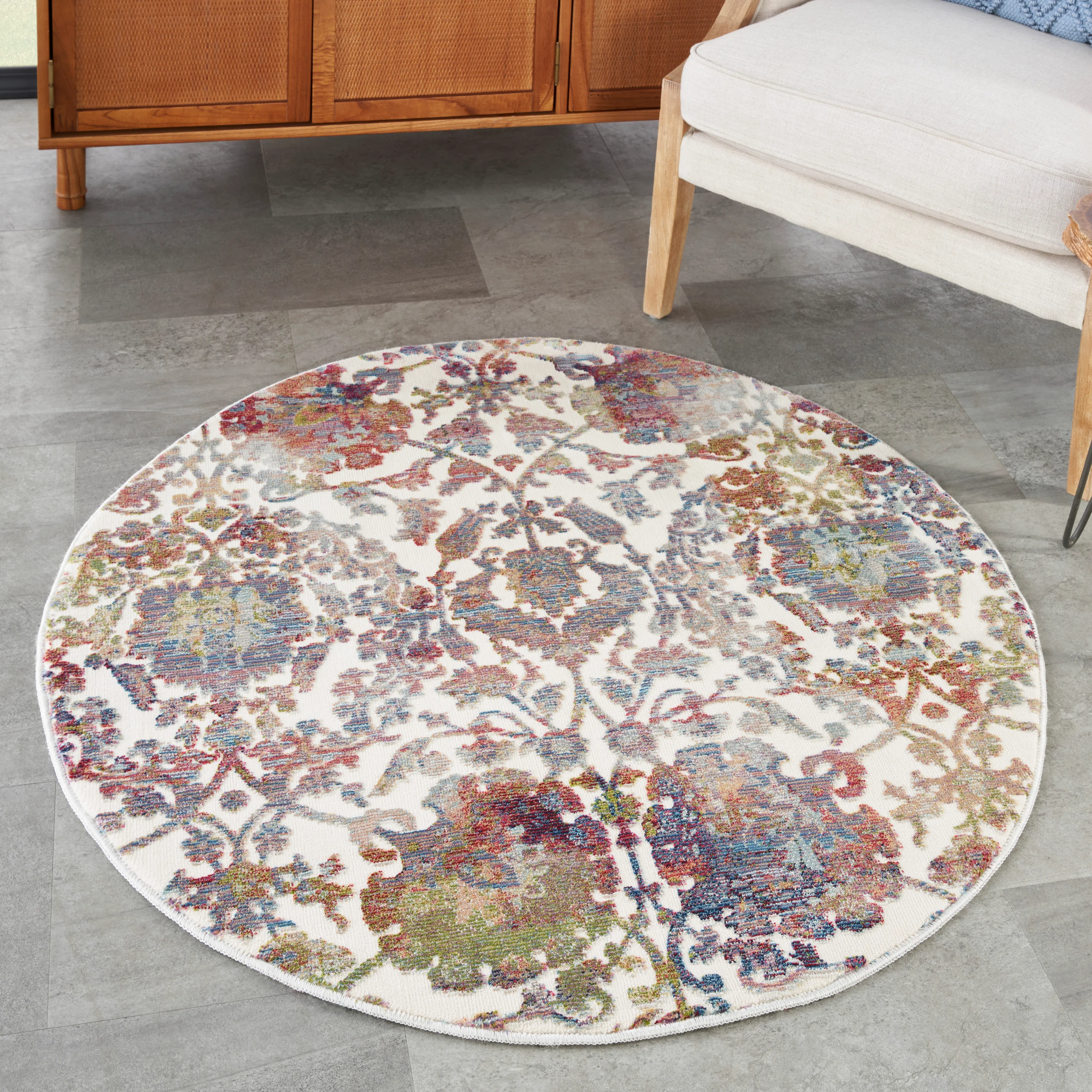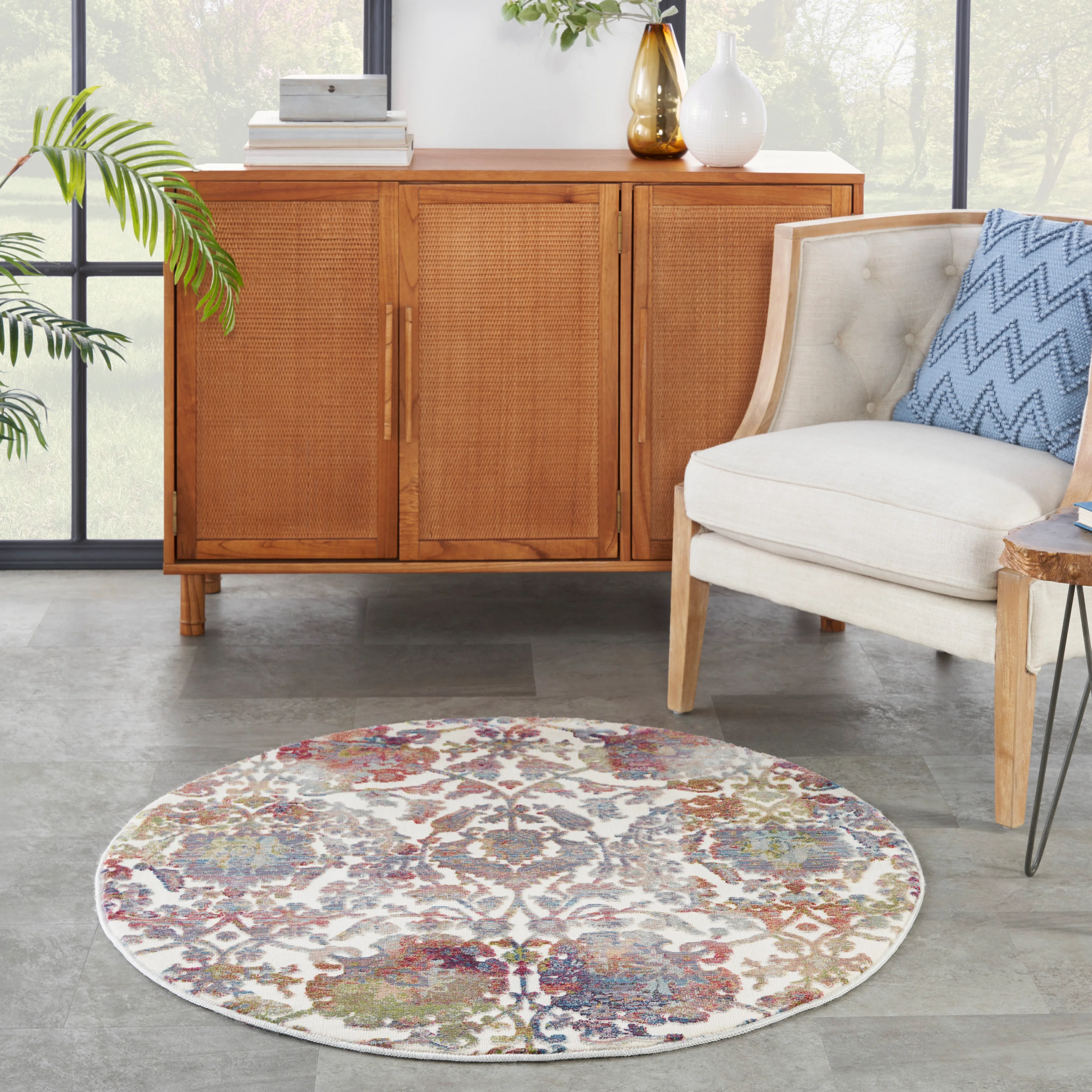 The Ankara Global 4' White/Multi Round Rug, made by Nourison,