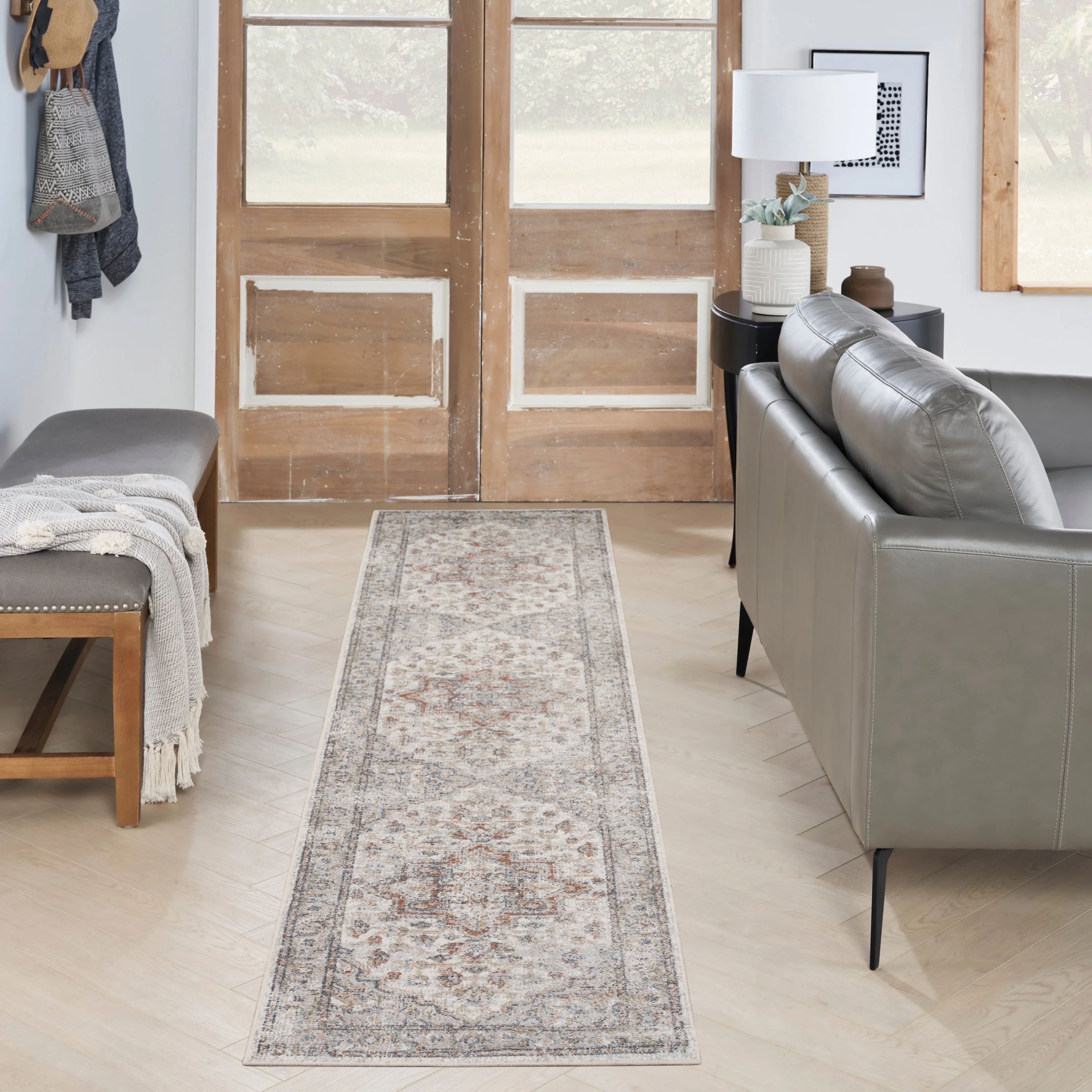 The Astra Machine Washable 2'2" x 12' Grey/Multi Runner Rug, made by Nourison,