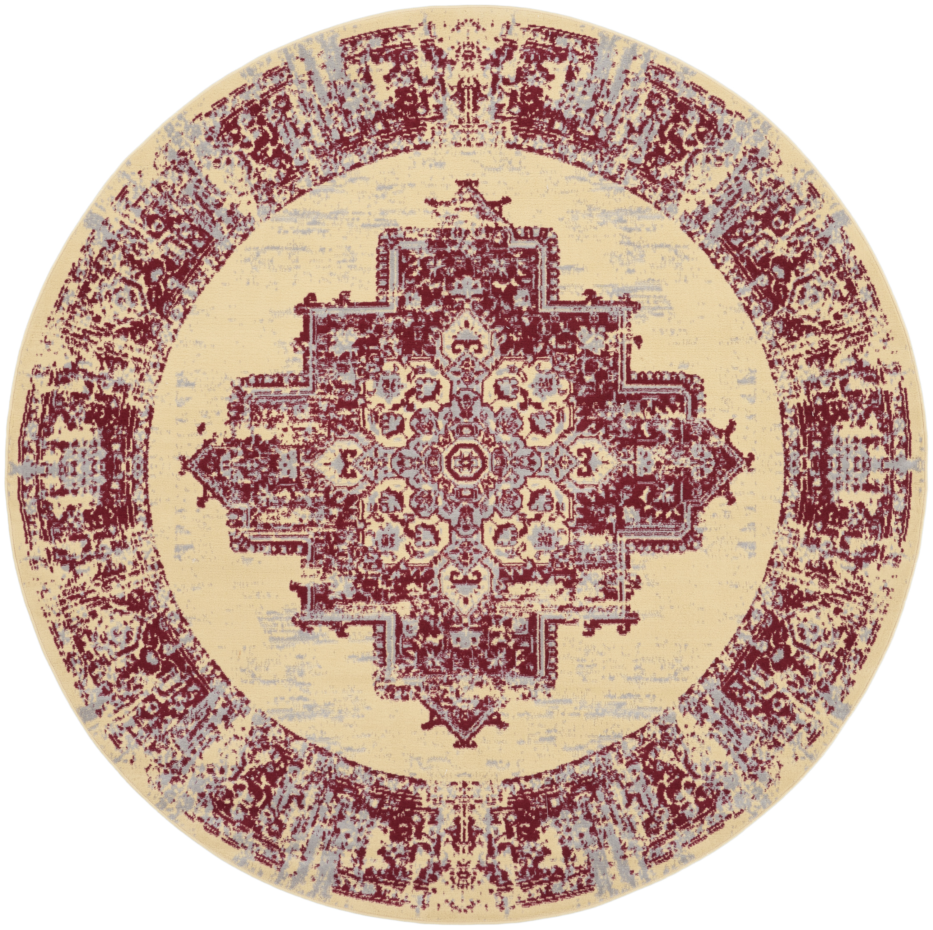The Grafix 8' Cream/Red Round Rug, made by Nourison,