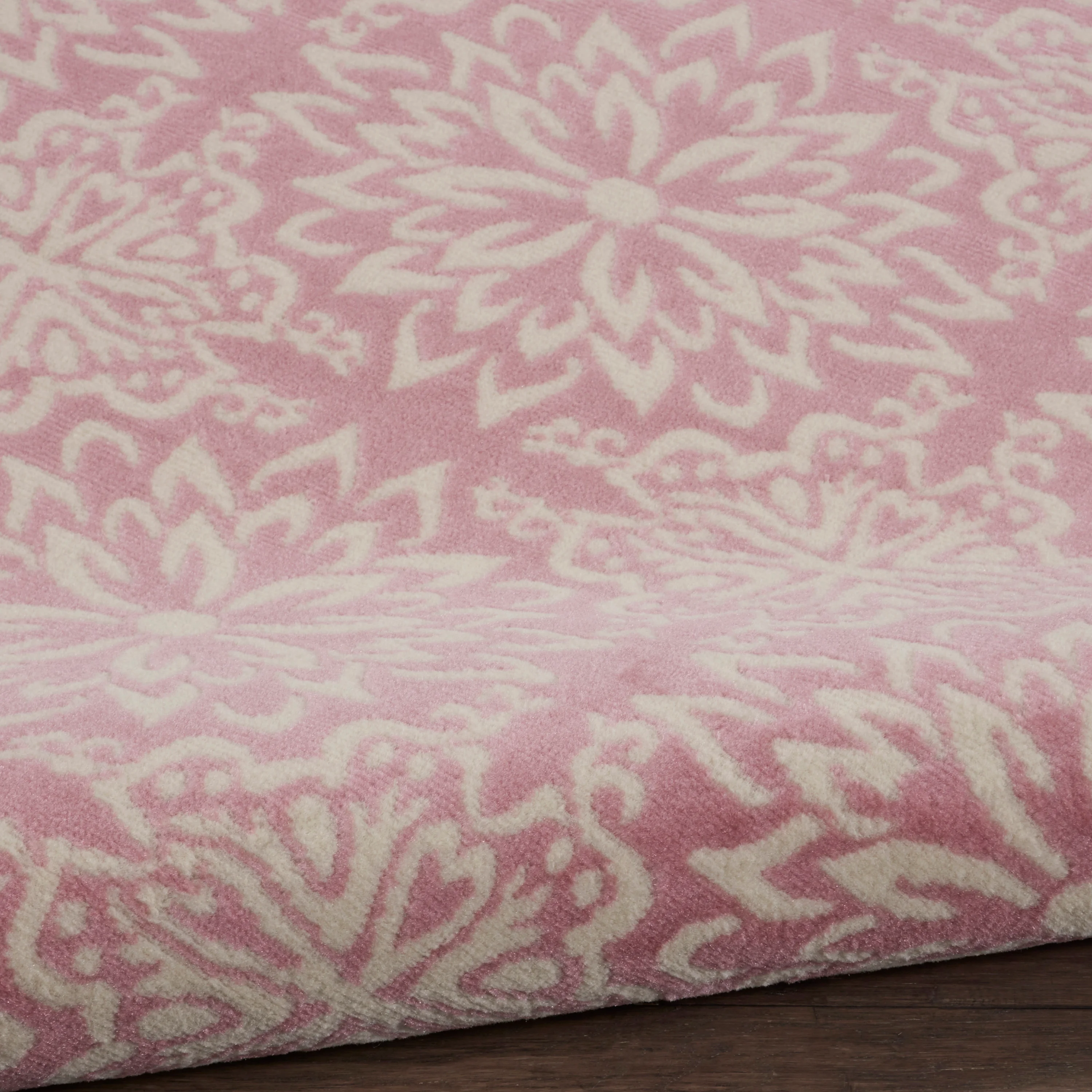 The Jubilant 5'3" Ivory/Pink Round Rug, made by Nourison,
