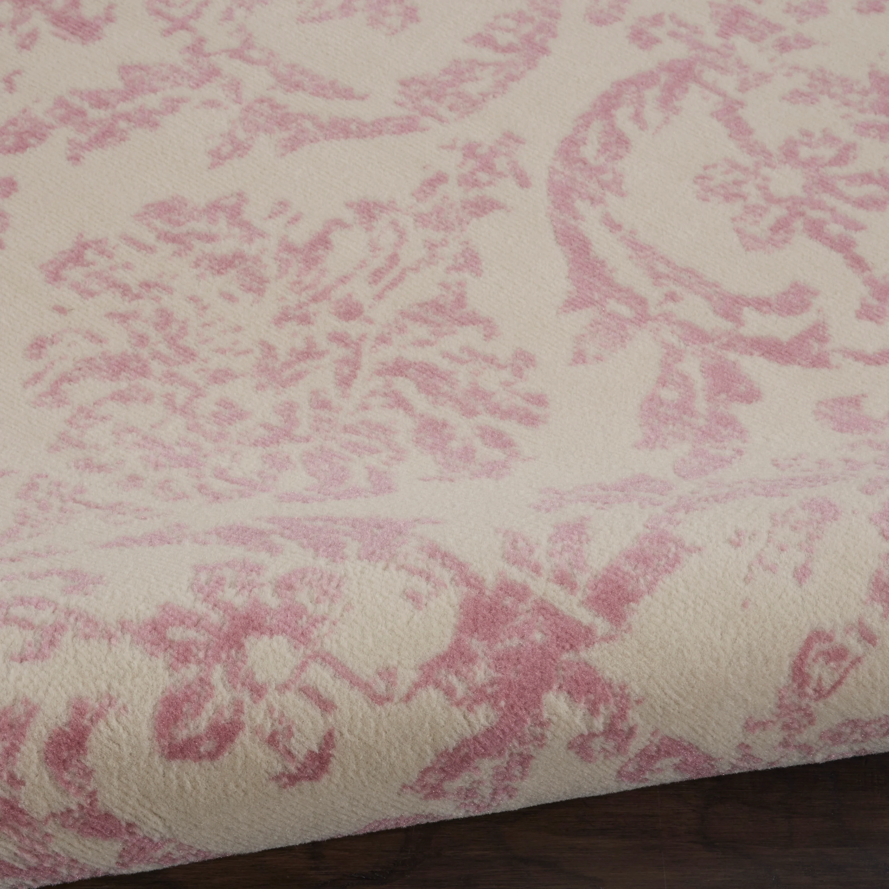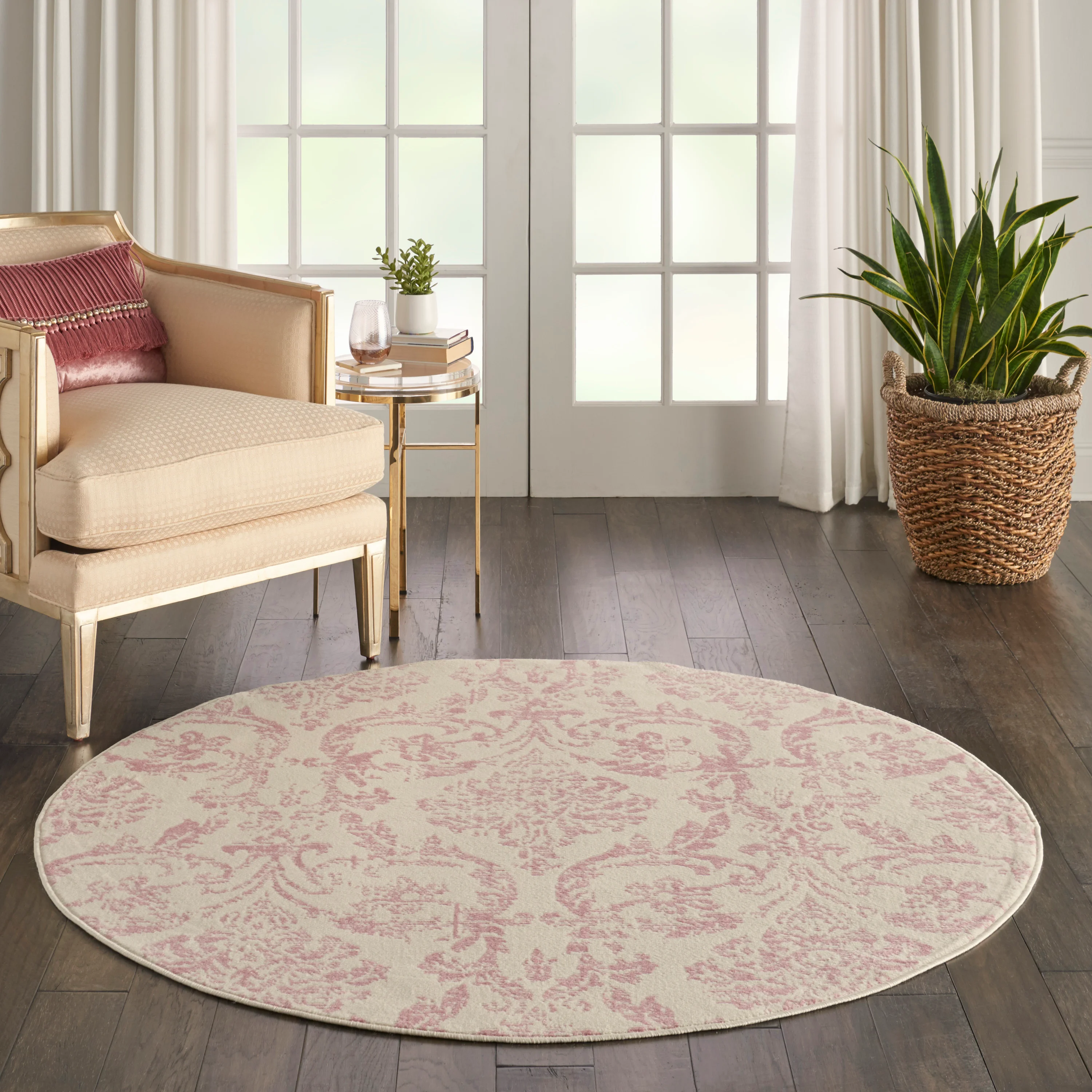 The Jubilant 5'3" Ivory/Pink Round Rug, made by Nourison,