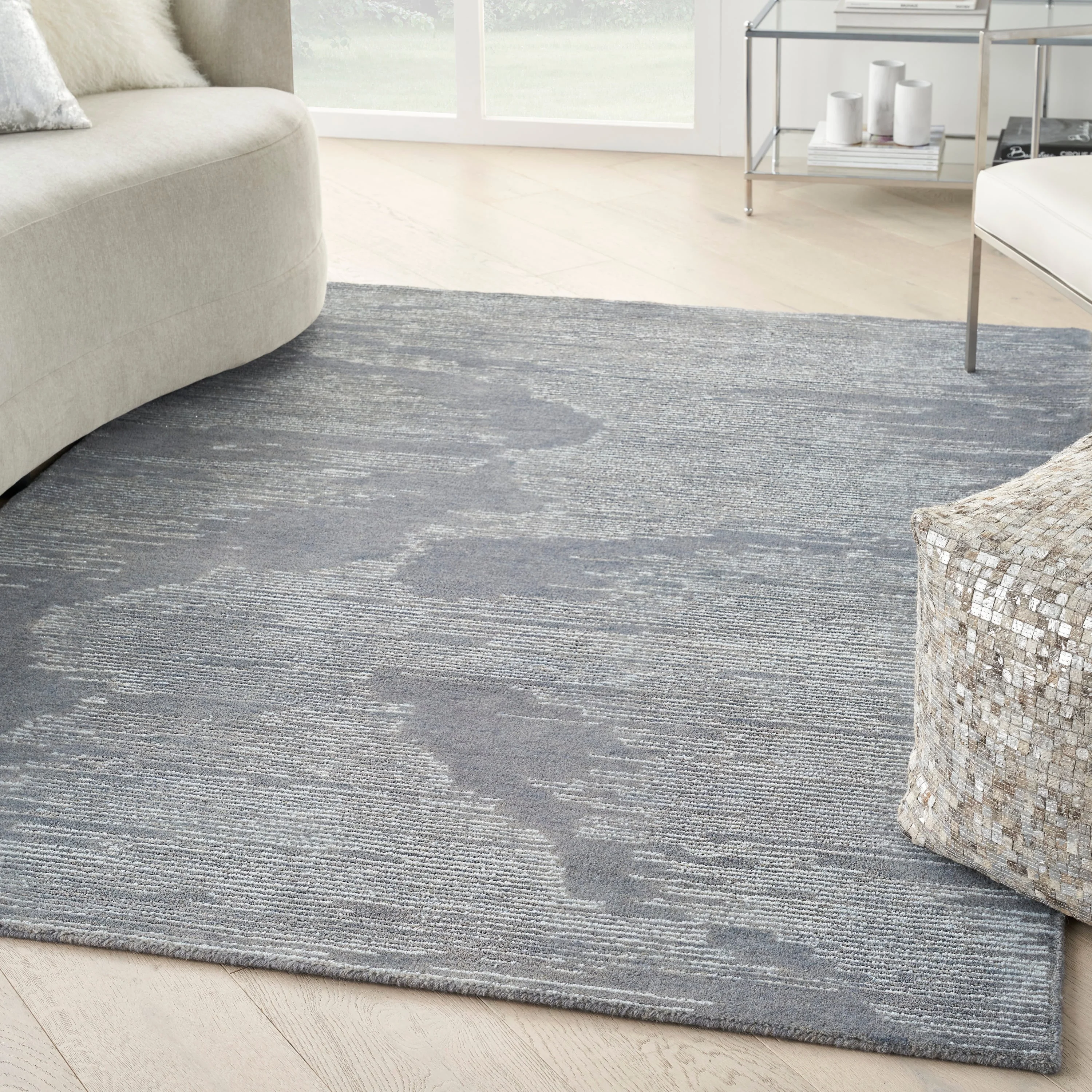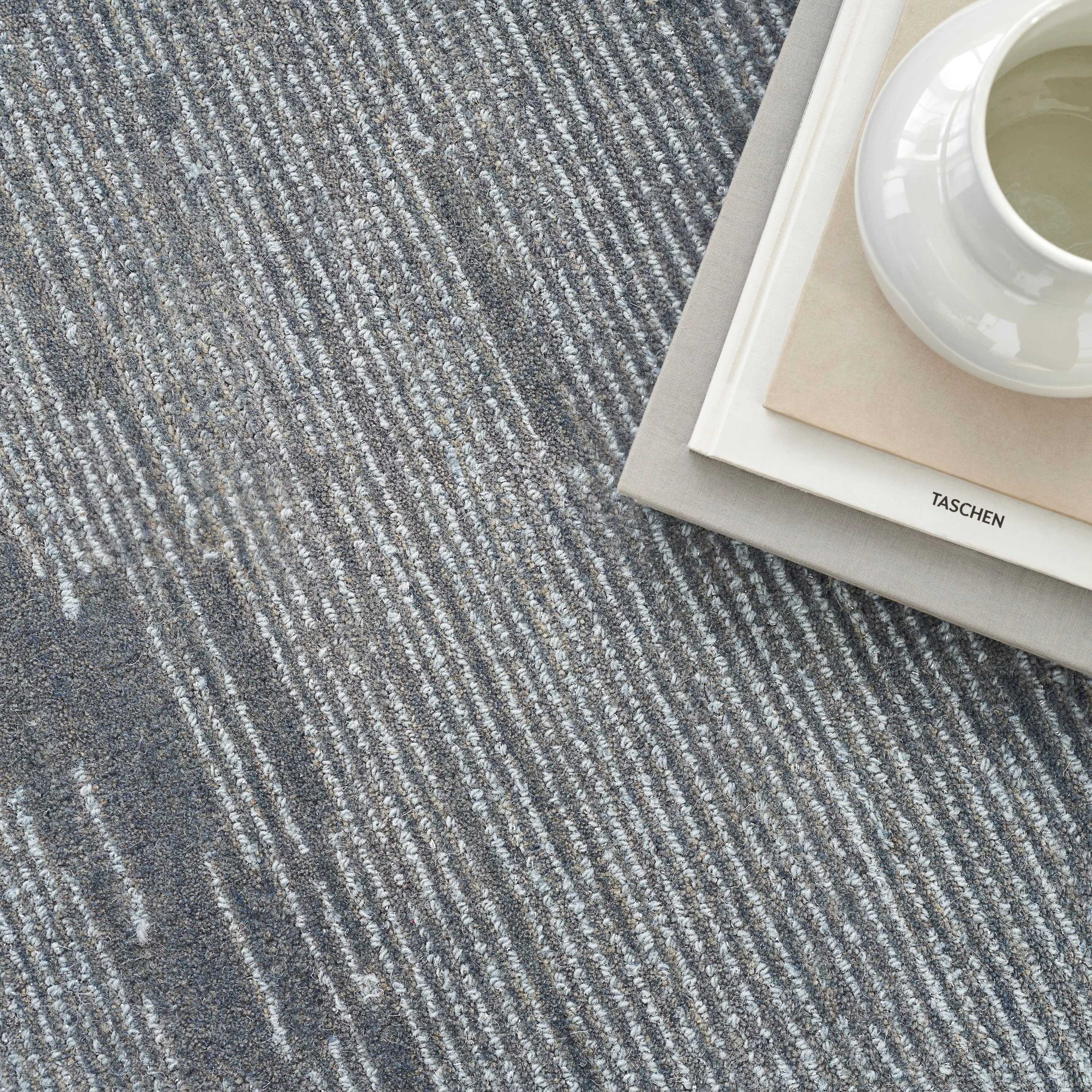 Handmade blend of wool, lurex, and silky Luxcelle offers premier comfort, Modern abstract rug brings a sense of calming movement to your surroundings, 0.50” thick pile feels comfortably soft underfoot, High-low tufting adds delightful texture, Recommended for areas with moderate foot traffic, We recommend a rug pad to help keep your rug in place and extend its life