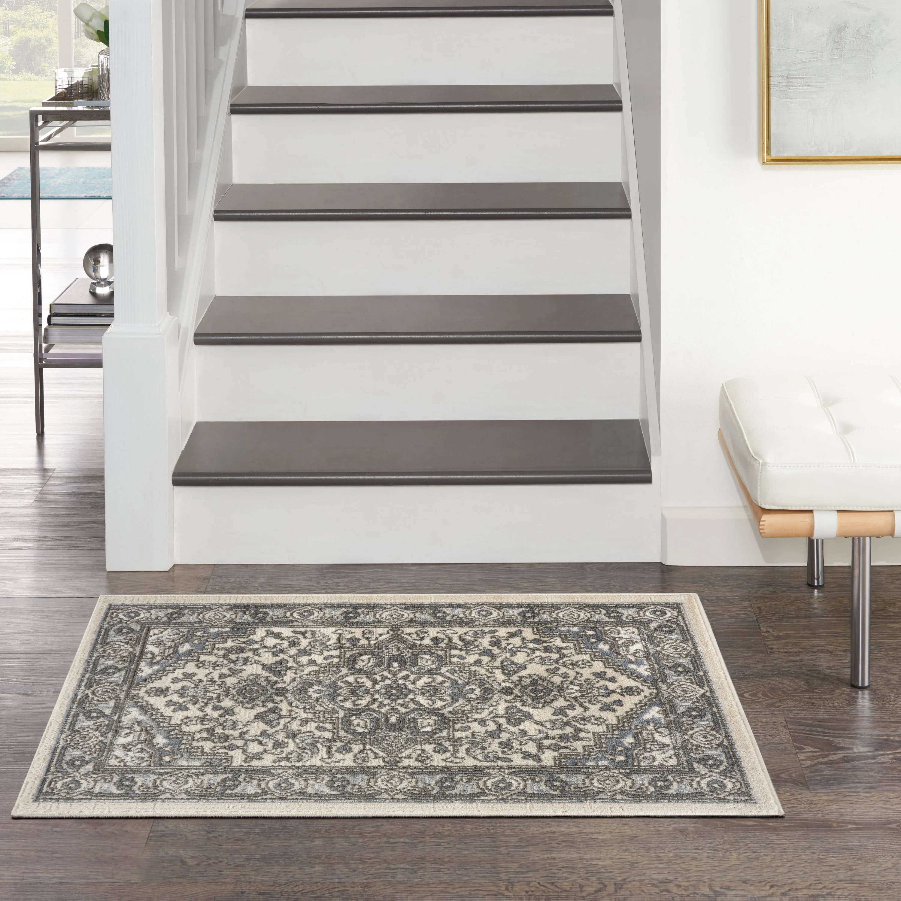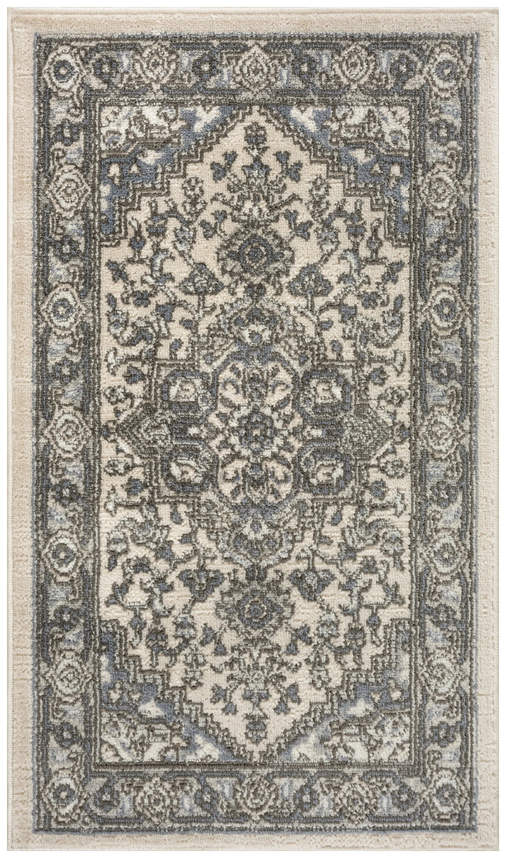 Low-profile construction is low-maintenance and easy to clean, Versatile, neutral colors complement virtually any room with ease, Vintage-inspired Persian rug adds instant personality to your décor, Machine-made from a durable poly-fiber blend, Due to the detailed construction of our rugs, both handmade and machine-made, sizes may vary by up to three inches in width or length., Recommended for areas with moderate foot traffic, We recommend a rug pad to help keep your rug in place and extend its life, OEKO-TEX Certified