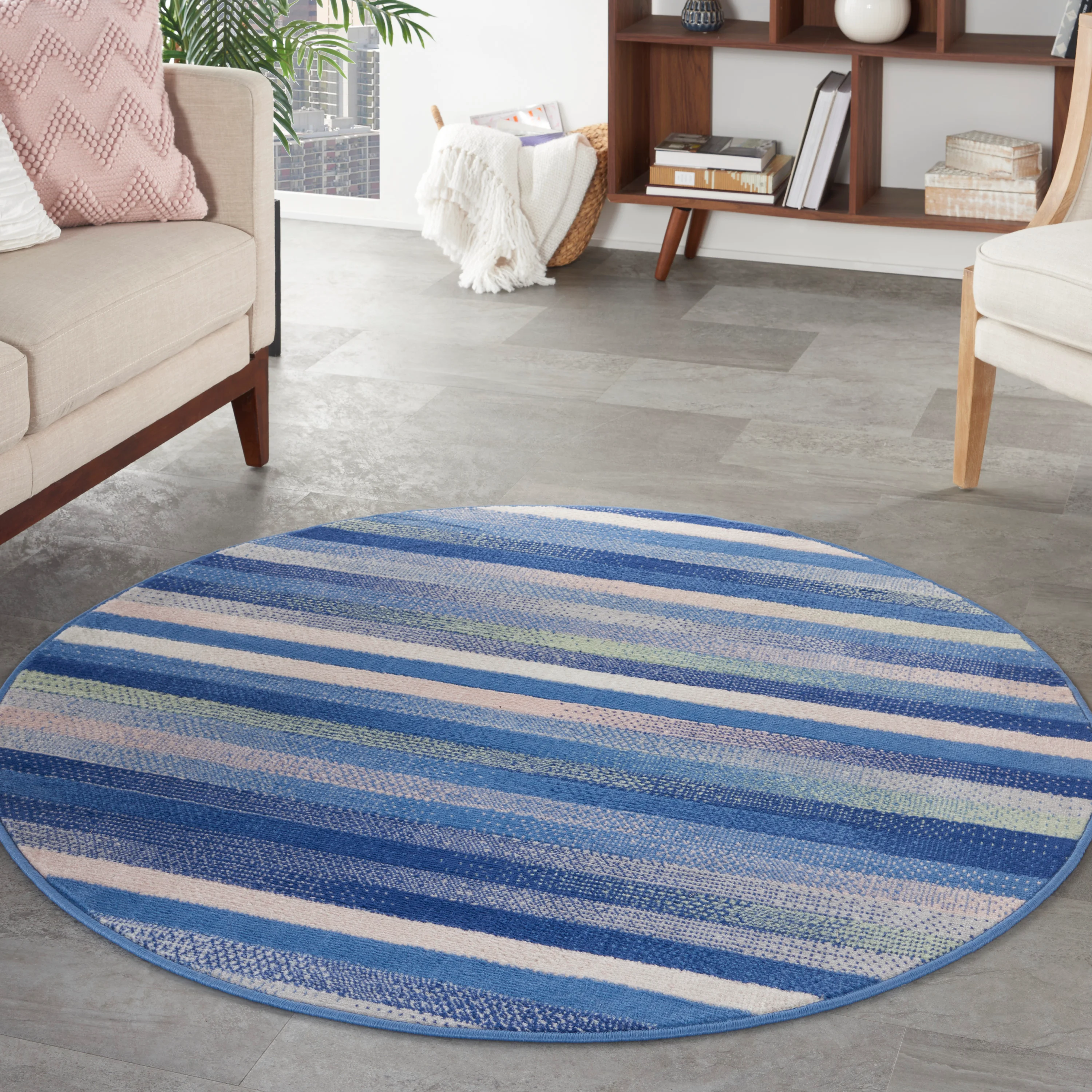 The Whimsicle 5' Blue Multicolor Round Rug, made by Nourison,